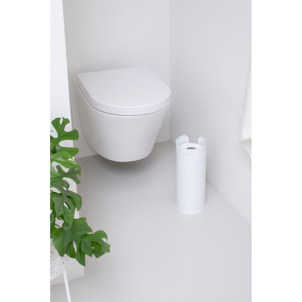 Dale un toque de estilo a la habitación más pequeña de la casa con este dispensador de rollos de papel higiénico de diseño minimalista ReNew de Brabantia. Para colocar en el suelo y con espacio para 3 rollos de repuesto. Su cuerpo cerrado protege los rollos del polvo y las salpicaduras. Higiénico y discreto. ¡Tenemos rollo para rato!