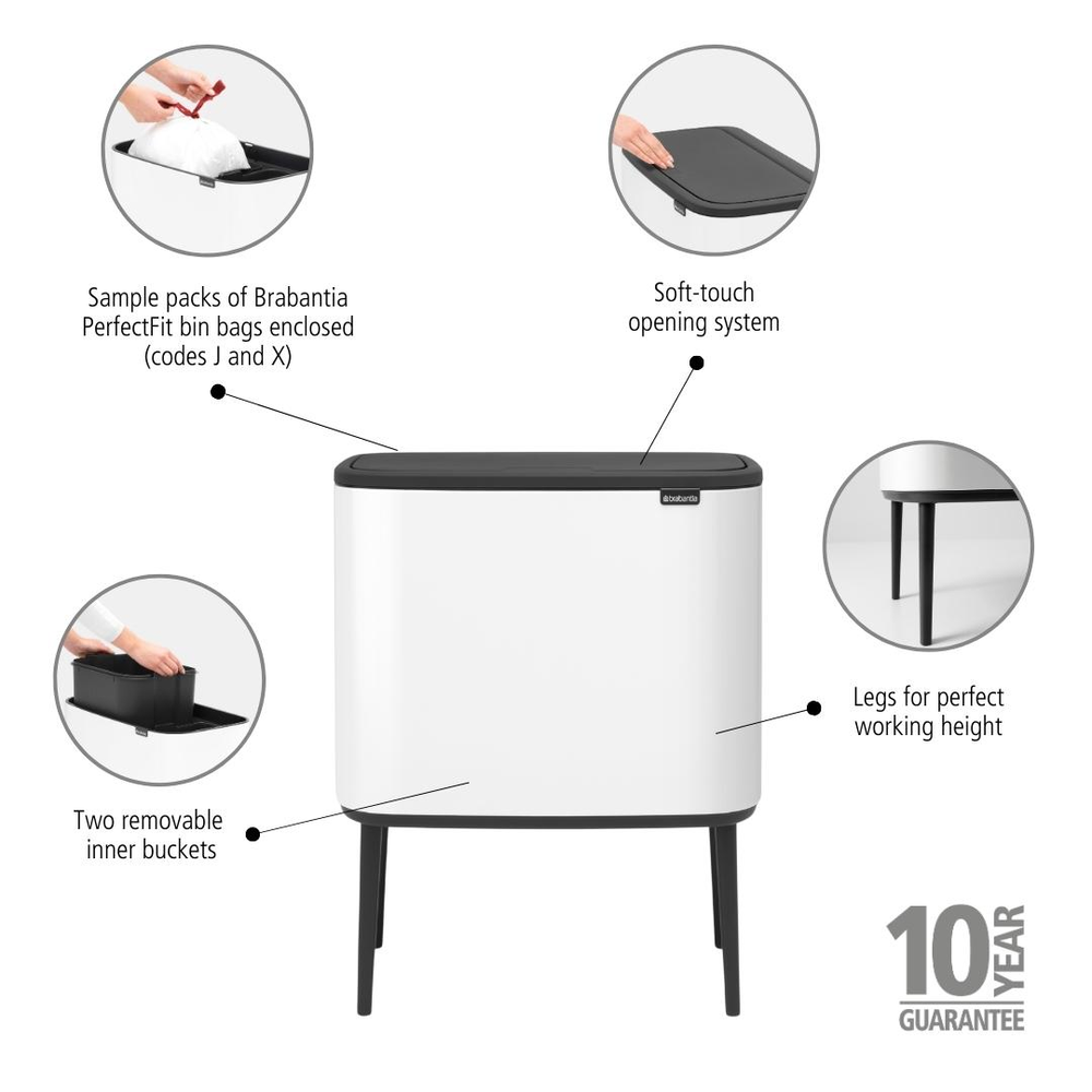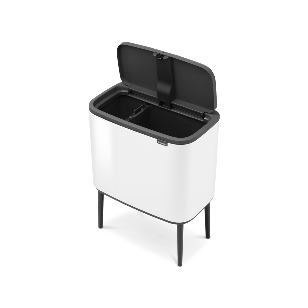 ¿Buscas una solución hermosa para la separación de residuos? Este basurero Bo Touch de Brabantia de 23+11 litros puede pasar perfectamente por un mueble más y tiene todo lo que necesitas para separar fácilmente los residuos. Cuenta con dos basureros interiores extraíbles para dos tipos de residuos, encaja perfectamente contra la pared y es muy estable gracias a sus patas ajustables antideslizantes. Además, gracias a su suave sistema de apertura puedes abrirlo y cerrarlo con facilidad con tan sólo el toque de una mano. ¡Esto sí que es separar con estilo!