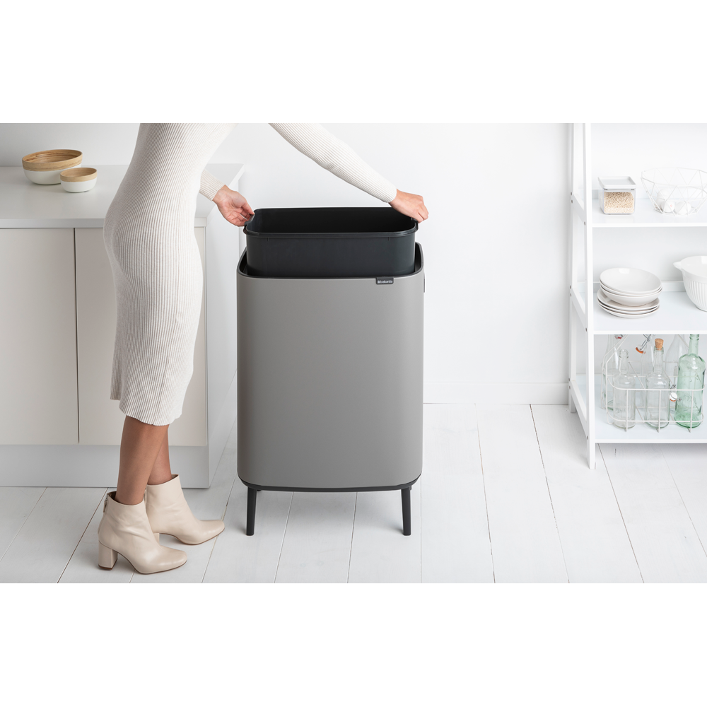 ¿Buscas un basurero con un magnífico diseño y gran capacidad? ¡Entonces el basurero Bo Touch Hi de Brabantia es ideal para ti! Esta belleza XXL con capacidad para 60 litros viene con cuatro patas elegantes, un sistema de apertura suave y asas integradas. Se abre con tan sólo un ligero toque y está diseñado con amor para el hogar y mimo para el planeta. Una gran ayuda para cualquier casa.