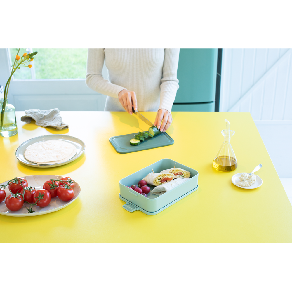 Llevarte el almuerzo es algo bastante sensanto. Y hacerlo en esta caja para almuerzo Make & Take tamaño grande de Brabantia lo hace aún más sencillo, estiloso y sostenible. Esta monada de caja viene con una tapa con clips y espacio para hasta 8 sándwiches. O también puedes meter bocadillos...Tu almuerzo, tu elección. ¡Que aproveche!