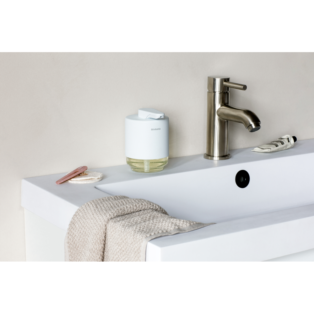 Llena de estilo tu aseo, baño o cocina con este dispensador de jabón de máxima calidad MindSet de Brabantia. Un accesorio que rezuma estilo fabricado en metal y crista, para todos aquellos locos por la higiene y el diseño. Esta monada no sólo dispensa jabón, sino que rezuma calidad, desde su amplia abertura de llenado hasta su soporte transparente. Un ejemplo brillante de los geniales diseños de Brabantia.