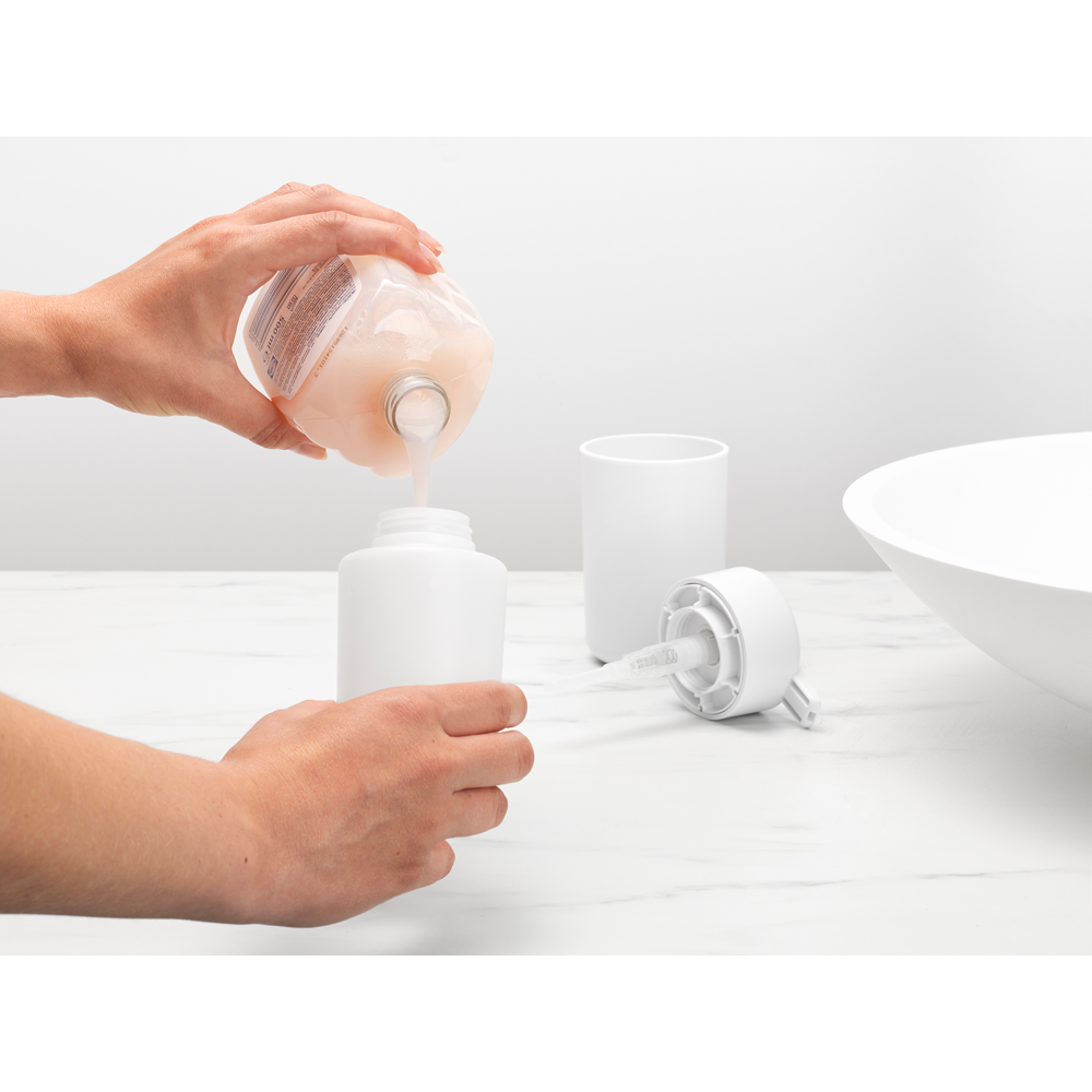 - Capacidad suficiente para las recargas de jabón habituales - 250 ml.