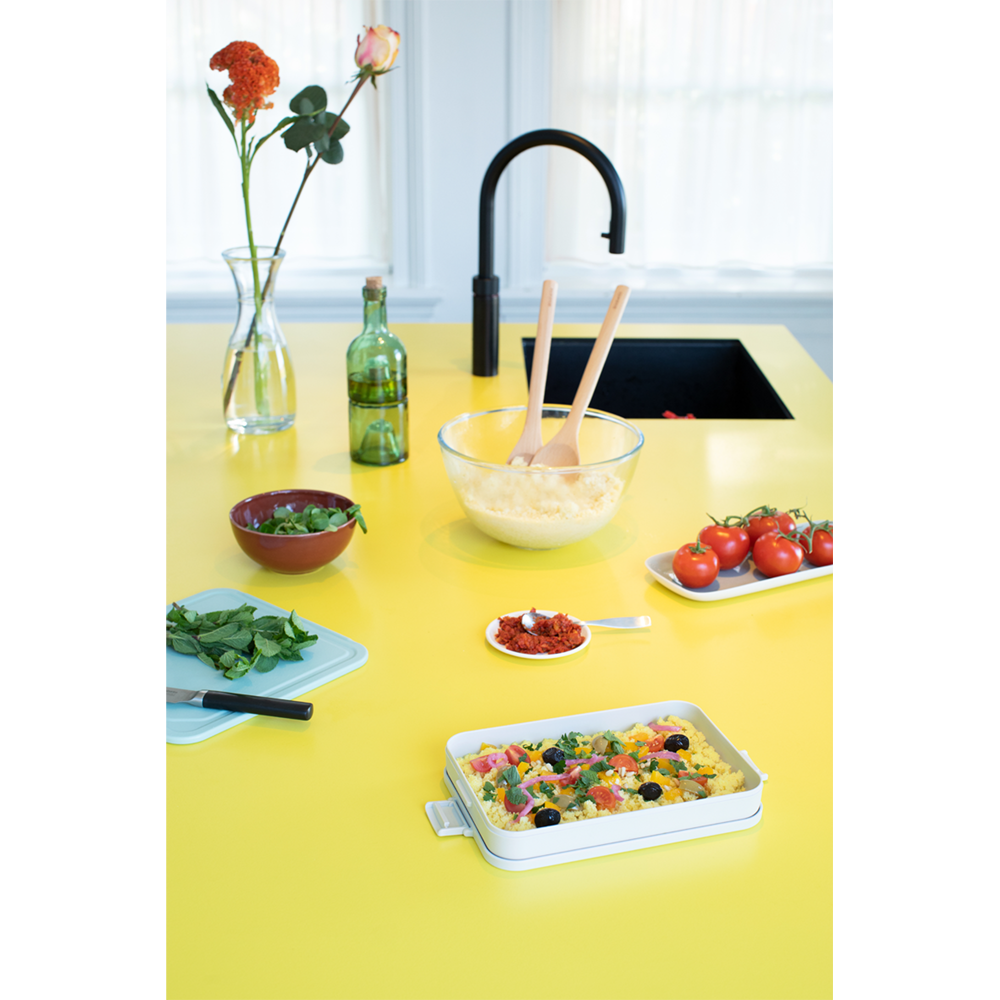 Llevarte el almuerzo en esta caja para almuerzo plana Make & Take de Brabantia es más barato, sano y sencillo. Esta caja plana está diseñada para caber en los compartimentos de tu bolso o mochila. Cuenta con una tapa con cierres de clip y espacio para guardar de forma segura 4 sándwiches. Una alternativa estilosa y reutilizable a las bolsas de plástico y a los almuerzos preenvasados. ¡Que aproveche!