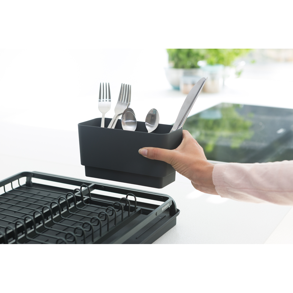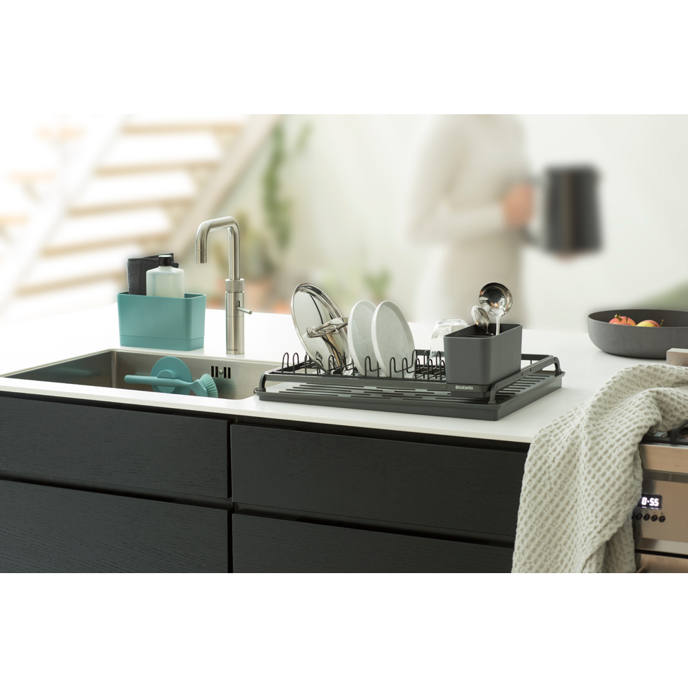 Este escurreplatos SinkSide de Brabantia está diseñado para secar tus platos. Tiene un diseño elegante, con espacio para hasta 13 platos más bols, cubertería y vasos. Viene con un recipiente extraíble para cubiertos y una bandeja recogegotas inclinada, para que el agua caiga directamente en el fregadero. ¡Toda una pasada!