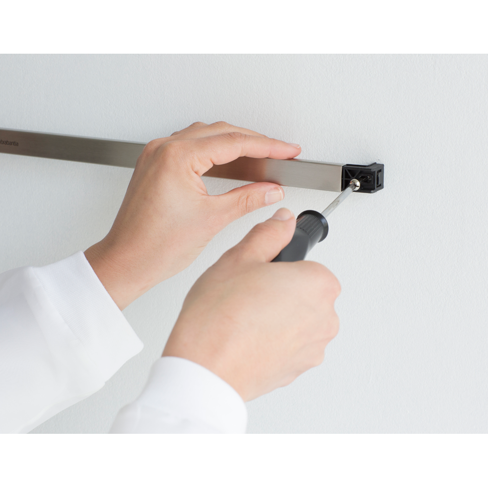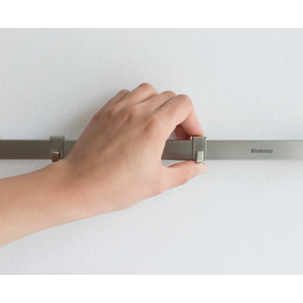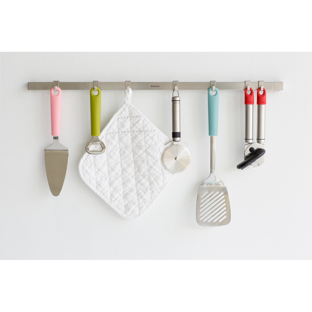 ¿Estás cansado del desorden en los cajones de la cocina? Utiliza esta barra de colgar de 60 cm de Brabantia. Una práctica barra con 7 ganchos para tus utensilios favoritos. Y está fabricada en resistente acero inoxidable de alta calidad. ¡Te quedarás colgado de ella!
