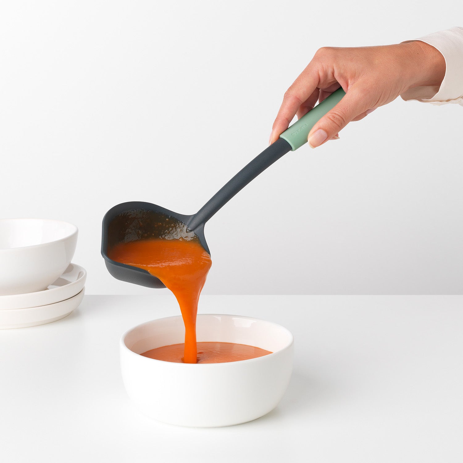 - Cucharón + Rascador Jade Green: dos funciones en uno, para servir sopas y aprovechar cada gota.