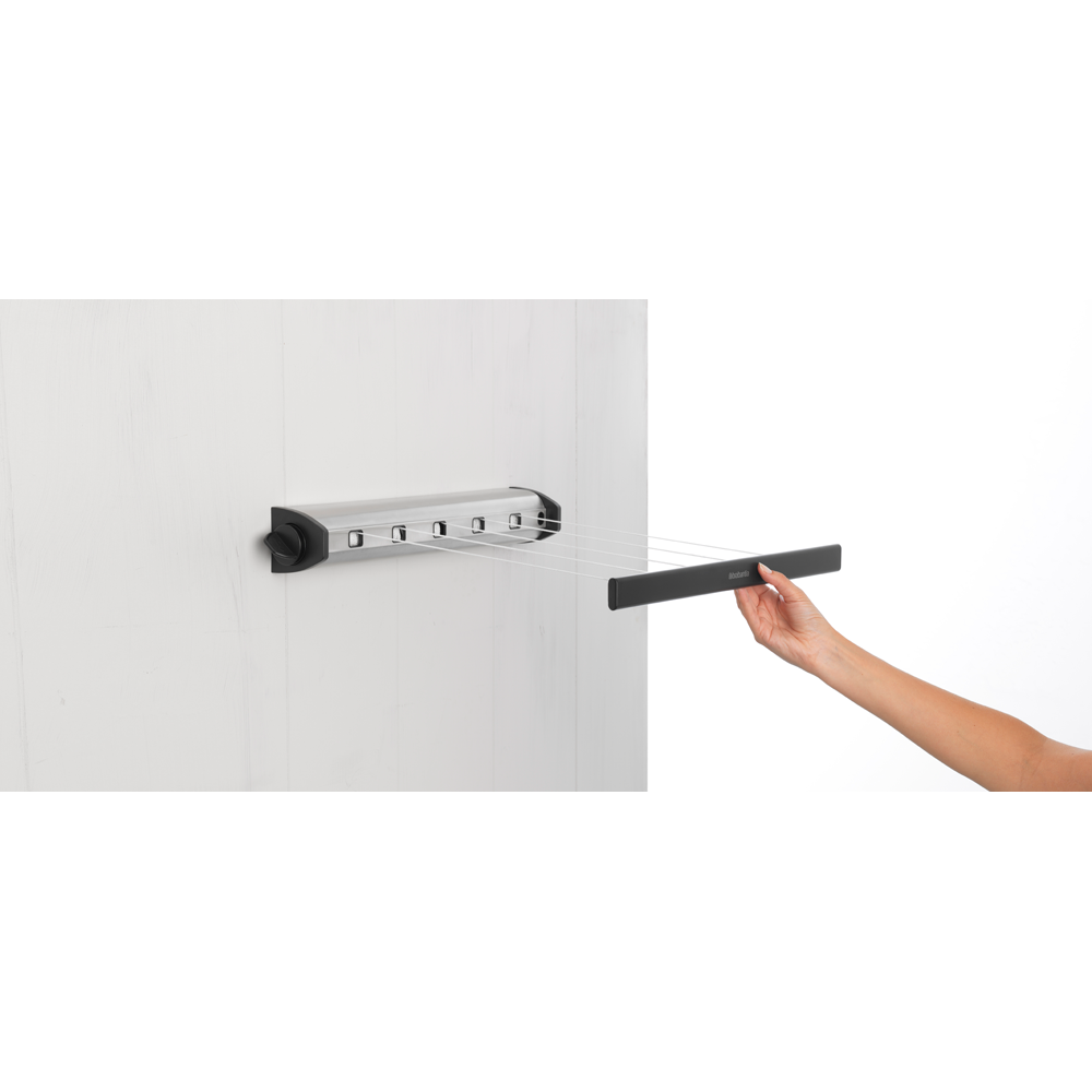 ¿Tienes mucha ropa para tender? Tira y consigue espacio extra de secado. Las cuerdas extensibles de Brabantia encajan perfectamente entre dos paredes de hasta 4,4 metros de distancia entre ellas. Son fáciles de usar, se manejan con suavidad y te proporcionan hasta 22 metros de espacio de secado. Además, su sistema automático de bloqueo hace que estén siempre tensas. ¡Te quedarás colgado de ellas!