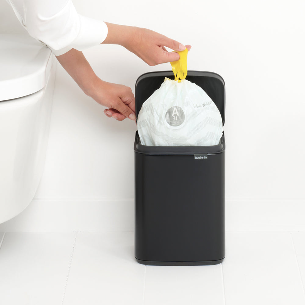 ¿Necesitas un pequeño cubo con un gran diseño? El cubo de basura de 4 litros de Brabantia será tu gran aliado. Puedes colocarlo en una pequeña esquina o colgarlo de la pared. Su ingeniosa tapa se abre fácilmente desde los laterales y desde la parte delantera del cubo, así que ya no tendrás que retorcer la mano para tirar algo. ¡Bonito por fuera y bonito por dentro!
