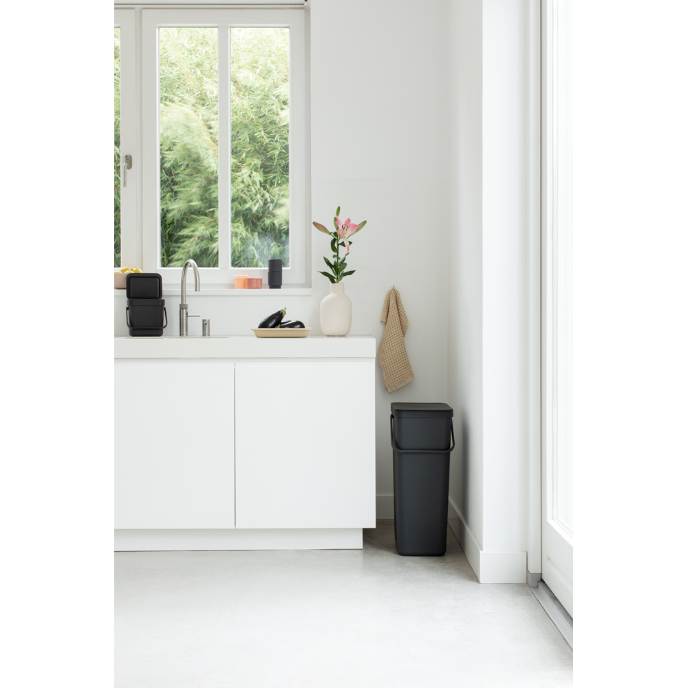 Tira los envases, botellas y latas vacías -y cualquier otra cosa que te venga bien- en este práctico basurero para reciclaje Sort & Go de 40 litros de Brabantia. Encaja perfectamente en una esquina o contra la pared y está provisto de una gran asa para transportarlo y vaciarlo. ¡Justo lo que necesitas para no comerte el coco con el reciclaje del hogar!