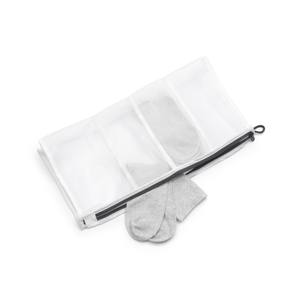 ¿No paras de perder calcetines? Pues ya no te pasará más con esta Bolsa de Brabantia para lavar calcetines en la lavadora. Una bolsa de malla para poner hasta 4 pares de calcetines juntos evitando que se desperdiguen durante el lavado, el aclarado o el centrifugado. El agua pasa a través de la bolsa, por lo que los calcetines quedarán perfectamente limpios y ya no perderás ni uno. Todo un salvavidas para los calcetines.
