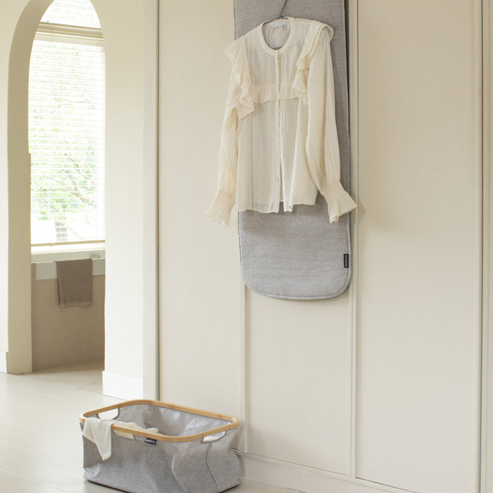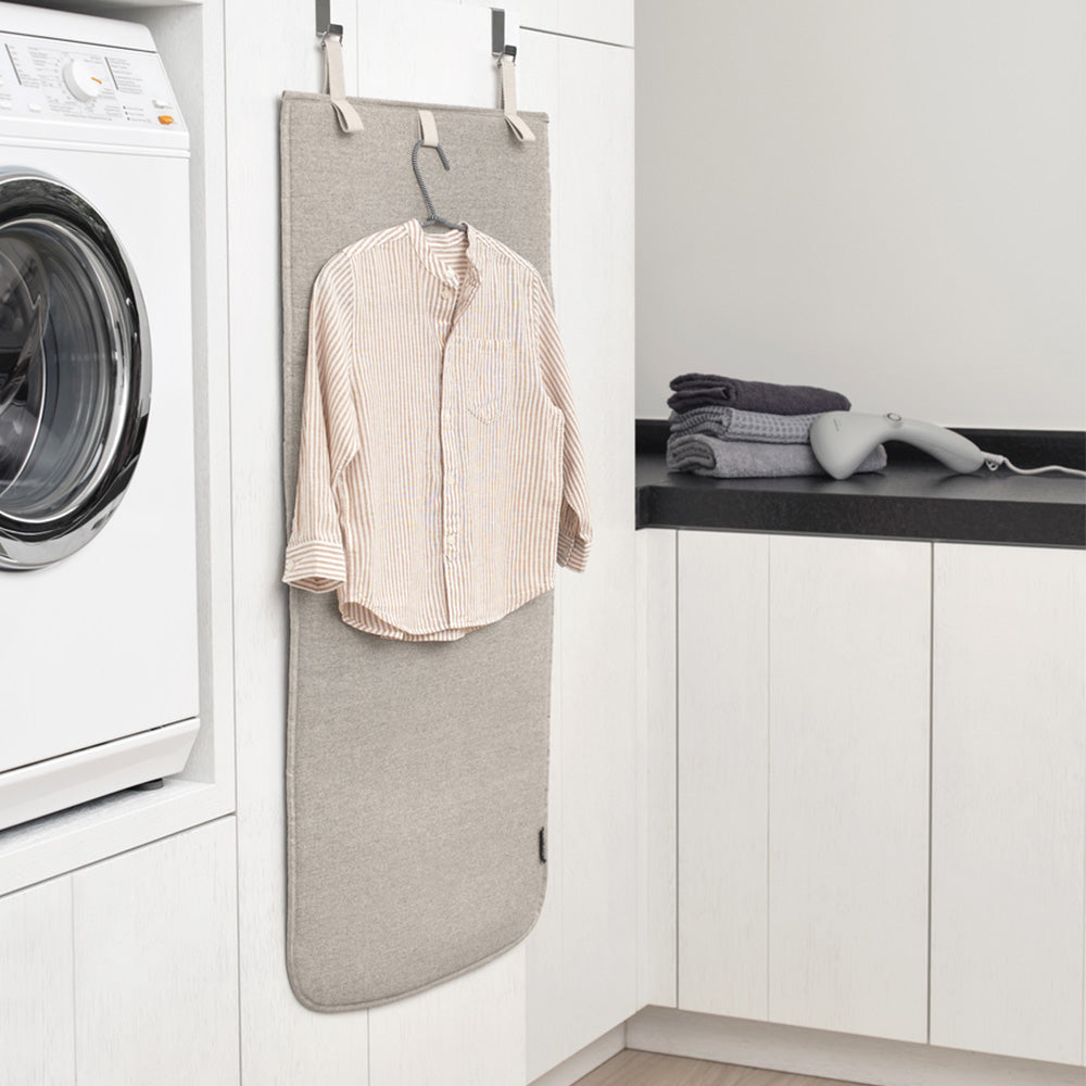 Planchar la ropa al vapor es una forma estupenda de deshacerse de las molestas arrugas. Y con la lona para puerta para planchado al vapor de Brabantia, se convertirá en una tarea aún más fácil. Despliégala, cuélgala en una puerta normal o de armario y ¡voilá! - tendrás una tabla para planchar al vapor al instante. La gruesa lona de 50 x 100 cm es ideal para planchar al vapor, protege la superficie trasera del calor y la humedad y se mantiene firme en su sitio gracias a sus ganchos. ¡Y di adiós a las arrugas